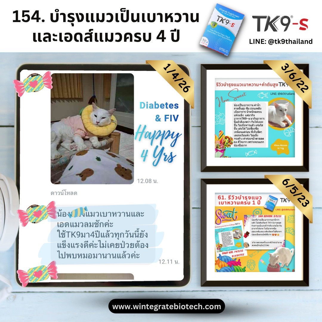 6/4/2026 #ReviewAboutTK9-S เรื่องที่ 154 กรณี #บำรุงแมวเป็นเบาหวานและเอดส์แมวครบ4ปี (A cat with Diabetes and FIV, after using TK9-S for 4 years)